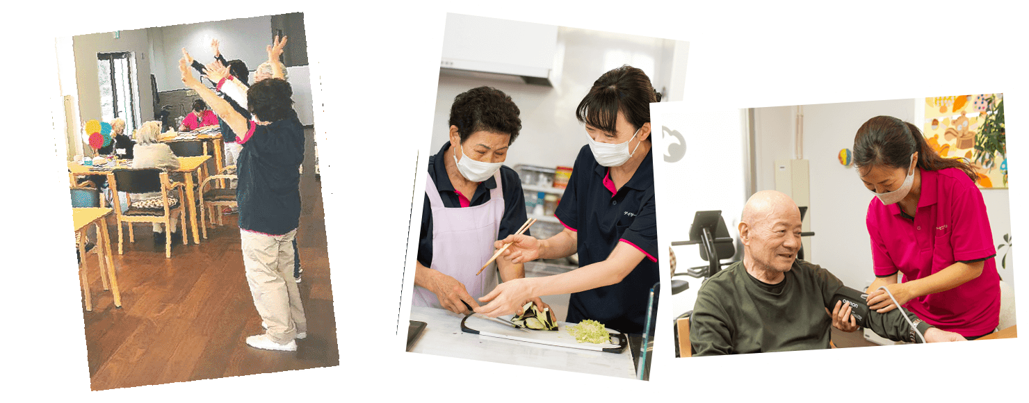 ご家族様の心配や不安を取り除くため、普段からのコミュニケーションを通して信頼関係を築くことを心がけ、また、ご利用者様個々のニーズや体調に合わせたサービス提供や活動プログラムの計画・実施を通じて、施設での生活が有意義な時間となっていただけるよう努めています。